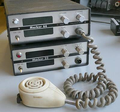 多分ですが、1967年の発売 今はなきクラニシから発売されました 当時のクラニシは、無線機メーカーでした 本機は、144MHz帯FM10W 終段のみ管球式のハイブリッド形式のトランシーバ シリーズとして、50MHz帯用のMarker 66がありました 多分ですが、DC12V用とAC100V用の2つの電源ケーブルの用意があったものと思います DC-DCコンバータを内蔵、終段は6360です 送受信別の基板がシャーシを挟んで上下に配置されているシンプルな構造です 電源は、12P角型ジョンソンコネクタが採用してあるのですが資料がなく、本機ばかりは全く手つかずです(受信基板も欠品している) 当時、福山電機(FDK、後に倒産後エンジニアの一部はALINCOへ)でも同様のハイブリッド仕様の無線機を販売していました |
