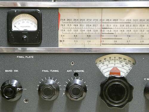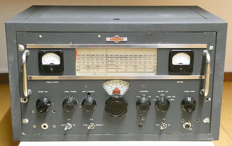 | コリンズ 80〜10m AM/CW アマチュアバンド専用送信機です 公称入力120〜150W VFOはもちろん、AC115V入力の電源も内蔵した、一体型の送信機です 超重量級の製品です 536W 310H 350D 重量は、約54Kgあります 1951年の発売のようです この時代、USではTVの普及によりTVI問題が深刻化したようで、40年代後半から登場していた32Vシリーズですが、TVI対策というキーワードでのモデルチェンジ、本機がこのシリーズの最終モデルです 相方の受信機としては、75A-2の時代でしょうか AM:120W入力 CW:150W入力という仕様のようです アマチュア無線用となっていますが、発売当時一体おいくらしたのでしょう・・・$475 という情報があります、1$が¥360の固定レート、大卒初任給が¥5〜6,000の頃です ハンドルは、オリジナルではないと思います(MICジャックも) |