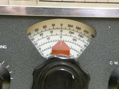 ダイヤル(周波数)読み取り精度について 14MHz帯を例に、2KHz毎の目盛になっています 一段下の7MHz帯では、1KHz毎の目盛です 余程、安定度に自信がないと、こういうダイヤルにはなりません 21/28MHz帯にあっては、読取り精度は1目盛5KHzです |