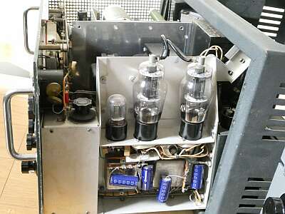 本体向かって右サイド 変調器部です 807が見えます 電解コンデンサは、前オーナーの手で交換されています |