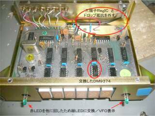 サービスマニュアルの記載に従って、そもそもカウンタ部にあった、DC12VからDC5Vを得る定電圧回路部分を、写真のようにリア・パネルに移行しました