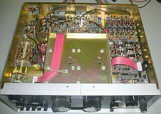 この便に、ここでの発熱源である5Vの定電圧回路をリアパネルに移行しました(サービス・マニュアルの最後に、改造するように書かれている)