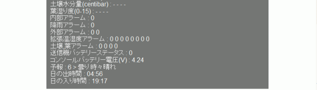 このワイヤレス・モデルの登場で、EC値の計測は出来ませんが、その他の因子(風向・風速・風冷却度・温度・湿度・露点温度・日射量・UV量・雨量・気圧・土壌温度・土壌水分量、以上12因子)については、このリーズナブルな観測システムで計測ができることになりました