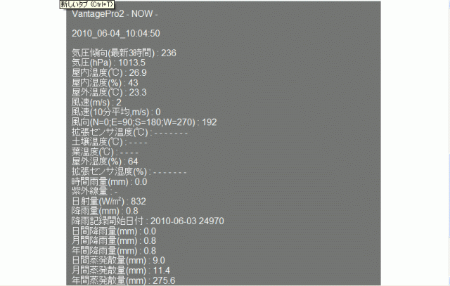 Davis VantagePro2シリーズ の計測データを、マルチ・ロガーHARUTOを経由して受け取り、そのデータを処理して