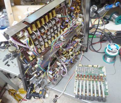 左部分が、RF部(バンド毎の同調回路が並んでいます) |