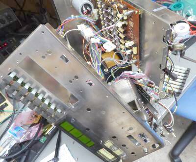 フロント・パネルに取り付けたシャーシの下にある基板・・・上の写真にある基板です、取り出すために、まずフロントパネルを外すところからスタート