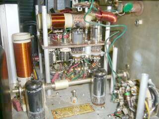 黒い2本の真空管は、変調ファイナル 1614プッシュプル 6L6GCのメタル管です |