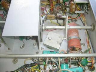 左奥に見えるタイトVCは、πマッチロード側のVCで、小容量ですが、その右に見えるSWで、並列に接続される固定コンデンサを切り替えて、必要な容量を確保します