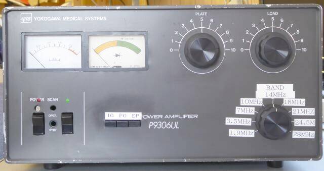| 2004年という製造ラベルが貼ってあります YOKOGAWA 横河メディカルの銘版が付いていますが、入手した時点ではアマチュア無線用に改造してあり、どこまでが医療用としてのオリジナルかがよく分かりません バンドSWなど、あとから追加されたようには思えません IP以外のマルチ・メーター切替については、明らかにあとから手が入れられています 今回は、このメーター切替SWの故障(破損)に、大いに悩まされました なにせ単体で部品が入手できません あと、Amperex 3-500Z/8802が入っていましたが、2本の内の1本が、G−Fタッチしています 真空管の入手は、いつかの機会でということで(使うつもりが無い!)、それ以外について、正常な状態にすることを目指しました 見れば見るほど、上手に作ってあります(HENRRY、あるいはDRAKE等に比べると、RFデッキの作り、チムニーの採用がない点など、見劣りはあります) しかし、ファン・モーターのOFFディレイも組み込まれていますし、高圧もブリッジ整流です コンパクトにまとめられており(405x200x390 重さは35Kg位あって重い!)、この手のアンプ製作のお手本みたいです 私にとっては、目の保養と言うことで、十分なギアです |