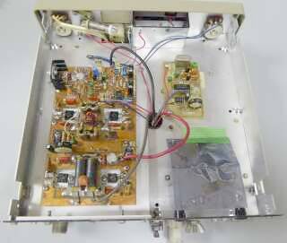 フロント・パネル下に見える、なにやら黒いギザギザのあるものは、4枚上の写真(フロントパネルを外した写真)と見比べていただければ分かるように、カーソル位置の補正用のダイヤル(ツマミ)です