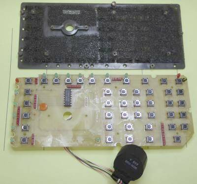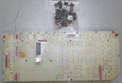 左写真は、SWを全て取り去った基板と、取り去った43個のSW |