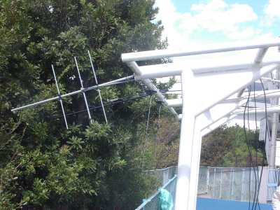 背景があって見にくいですが、水平偏波と垂直偏波の八木を組み合わせています