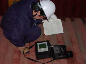 スペアナを使用し、コンテナ上に貼り付けてあるタグ周辺の電波チェック |