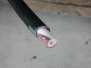 こちらは、漏洩同軸ケーブルです 同軸シールドがスリットのようになっていて、わざと電波が漏れるように作ってあります