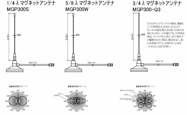1/4λ・3/4λ・5/8λのエレメントと、マグネット基台/ケーブルのセットをご用意しています(屋外仕様) |