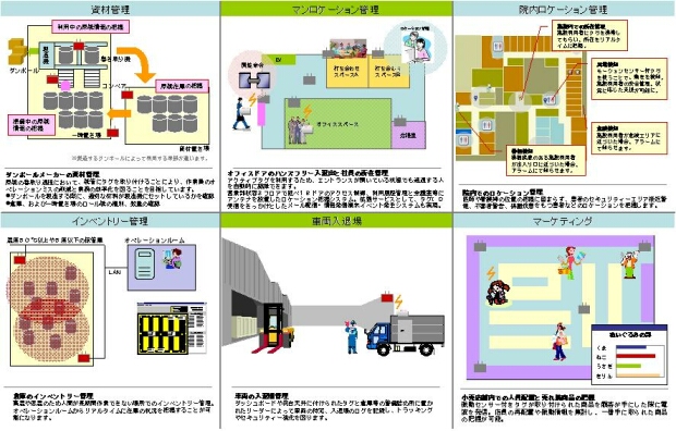 ここでは、ActiveRFID(無線TAG)を使用したいわゆる位置(動態)管理の応用例をご紹介しています