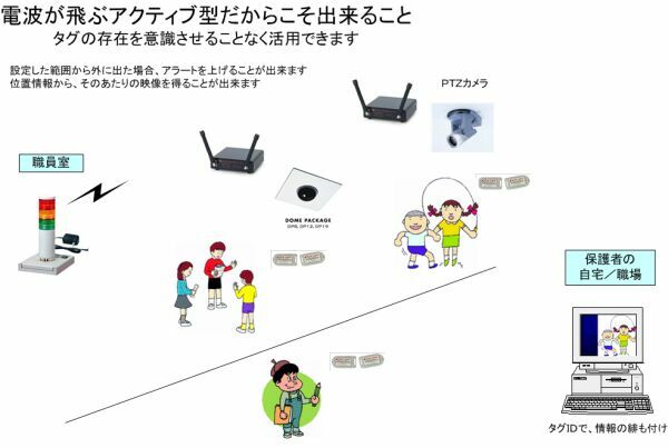 こうすることで、校門での登下校チェックだけでなく、通学路のみならず、その範囲を拡げて地域における「見守り」が可能になります(対象は、お子さんだけでなく老人の方にも拡大可能でしょう)