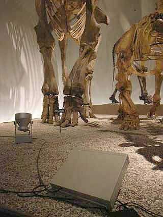 平面アンテナの背後の足の骨はマンモスのものです |