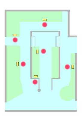 黄色の四角(アンテナ位置) 赤丸(設定された立ち位置)
