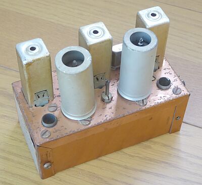50MHz帯用受信コンバータ 双三極管6ES8を使用したカスケード方式のRFアンプに、5極管ミキサー・・・クリスタル発振は3極管部でというシンプルな2球構造のコンバータで、50MHz帯をBC〜30MHzに変換します 変換クリスタルの選択/本機には22MHzのクリスタルが装着で、28〜32MHzに変換できるモデルです ユニークなのは電源供給 ひとつの電源ユニットで差し替えることで複数のコンバータの使用を可能としています 144MHz帯用にCB-2という製品があるようです こちらは、クリスタルを選ぶことでBCラジオから、50MHz帯受信機まで対応できる設計のようです ゲインが取れないのでしょうか、CB-2ではカスケードアンプの後に5極管のアンプが入っています アンテナ(送信機)、あるいは受信機との接続は、昔懐かしいBCラジオアンテナ接続プラグを使用します(すべてのコンバータに共通) |