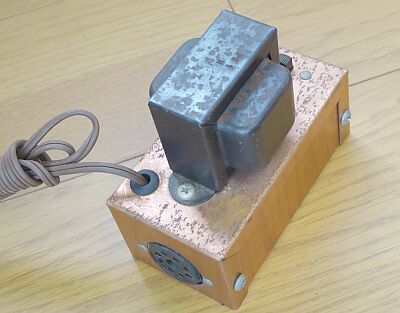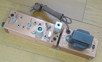 受信コンバータ専用電源 ヒーター6.3Vと、DC125Vを得る簡単なプラグ接続方式を採用したコンバータ専用電源装置です 電源共有ということで、ユニークな設計となっています 使用には、電源とコンバータ本体を連結します 接続(連結)は、US(GT)プラグ・ソケットを利用してコンバータ本体に給電します 最後に、コンバータと電源を並べて写します |