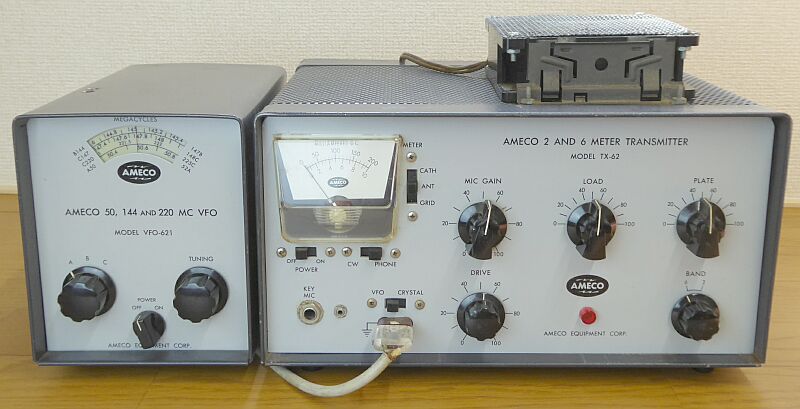 | 1950年代後半から、70年代によく見かけたブランドです 直近では、PT-2、PT-3など、受信用プリアンプで、この『AMECO』ブランドを目にした方もいらっしゃると思います 1960年代の代表的な製品から 送信機 TX-62 関係して受信コンバータ をご紹介します 製品としては、アルミシャーシ・ケースを採用し、構造はしっかりしており、少ない構成部品で最大の効果を得ようとしている様子を、各所で垣間見ることが出来ます アマチュアライクで、とても好感が持てる設計の製品です 国産のTRIO TX-26、VFO-2 あたりと比較すると、技術の差、得られる性能の違いが判ります VFOをひとつの例に AMECOでは、逓倍せずコンバートして、24〜27MHz台を得ます TRIOでは、3逓倍して、24〜27MHz台を得ます 単純比較でも、ドリフトにおいて、AMECOはTRIOの1/3となります |