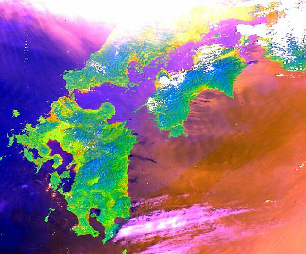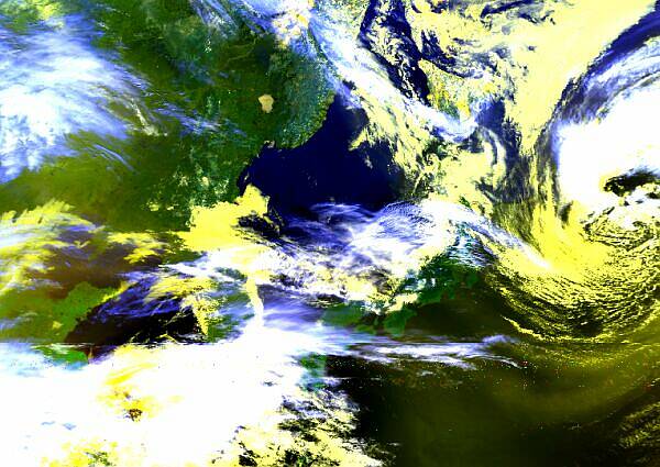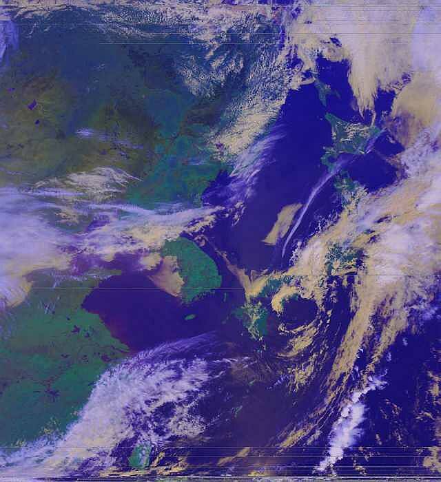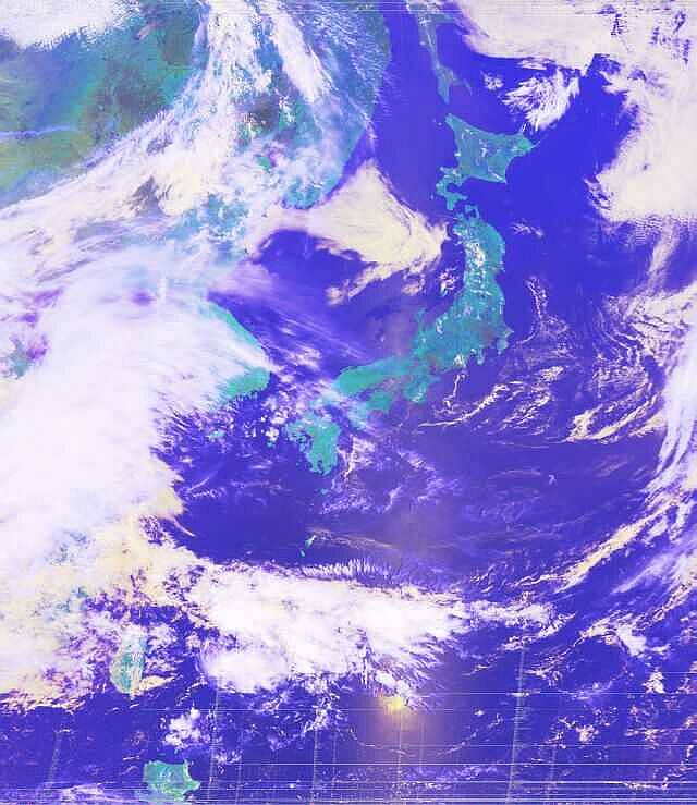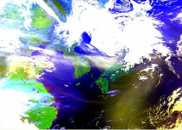 | 調整中に受信したNOAA15の画像 東シナ海上空からでしょうか(2005-12-29 22:00 UTC) | ||||||||||||||||||||||||