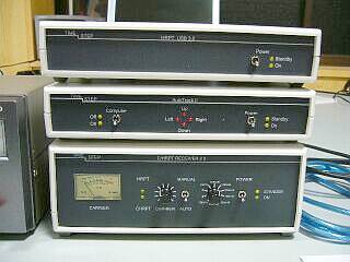 こちらが、メイン装置のアップです 上;HRPT用PCインターフェイス 中:トラッカー 下:レシーバー |
