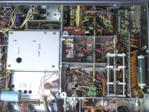 アルミの箱に見える部分は、VFO部、その下はキャリア発振部です
