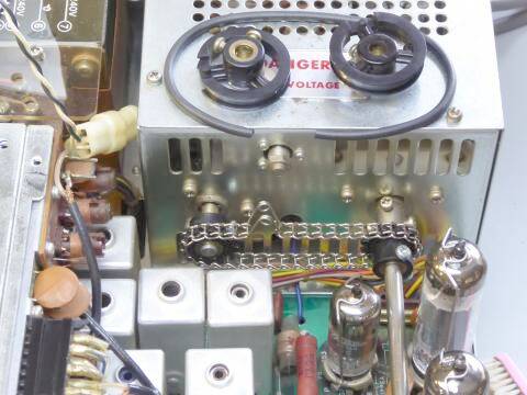 プーリーの構造から、糸掛けでも良いかなとも思ったのですが、ここはチェーンで駆動することにしました |