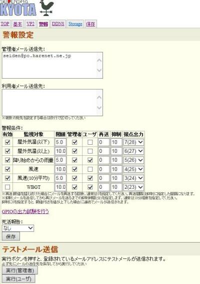 | 遠隔気象/ポイント気象計測を行い、計測値を監視、閾値を超えると警報の発報 災害復旧工事現場、工場・作業現場や園地の様子を遠隔で監視でき、現地には警報をあげることが出来ます 遠隔・・・・気象観測場所と、人のいる場所 作業をしている人と現場事務所や本社など、離れた様子を言います イーサーケーブルなら100m以内、無線ブリッジやLTEの使用でその距離はいくらでも?