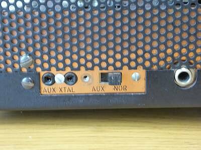 こんなところにヘッドホン端子と、AUXバンド追加クリスタルのソケットが用意されています 正面向かって左サイドパネルです スライドSWをAUX側に切り替えることで、AUX_XTALが有効になります ビス1本が欠落しているのは、ご愛敬! |