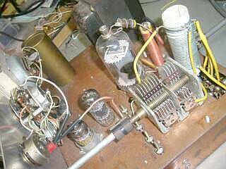 ファイナル部のシールド・ケースを取り外したところ 見るからにお疲れモードの終段管 6HF5です 離調させても、150mA流れません 実際のところ最大35W程度しか出ません(110mA程度/7MHz帯 21MHzでは25W程度) 現状で、POEWR SETボリュームを回すことで、12〜35Wくらいの範囲で可変が出来ます(7MHz帯) 本来、終段マッチングVCの調整の目安となる同調表示Neが、たまにしか点灯しません アンテナを外して負荷インピーダンスを高くすれば、少ない電力でも点灯します ここは、パワー不足ということでスルーしました 終段回路はπマッチ・・・ロード側は固定Cで、いわゆるプレートVCのみの操作となります 構成は、一般的な3ステージです スペック通りの動作には、鮮度の良い?6HF5を探さなくては・・・手元にあるSWAN500には2本入っていますが |