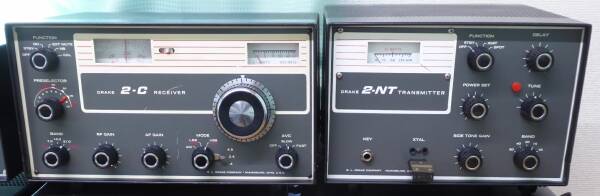 | 1966年に発売になったCW専用送信機です 誕生は5年くらいの違いなのですが、こうして2-NTと2-Bと並べると、ご覧のようにデザインはマッチしません 2-NTについては、4ラインと同様のケース・デザイン&色合い・・・R-4が一足早く1964年に発売になっていました 余談ながら、本機はシリアルNoから1970年ごろの製品のようです この送信機の相方として、一緒に発売となった受信機は、Drake2-Cです 2-Cは、2-NTとのコンビネーションを意識してデザインもそうですが、サイドトーン入力端子が背面に用意されています(この時点で横行きダイヤルではなくなりました) |