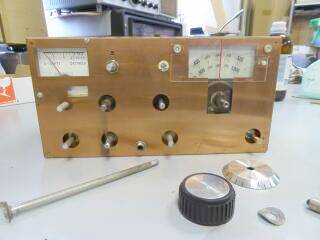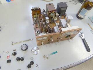 いつものように?分解・清掃からスタート アルコールと、いわゆる住宅/家具用の洗浄剤を使います 状況によってはコンパウンドや仕上げに電化製品用のクリーナーの出番もあります なにせ50年選手ですから、それなりに錆など劣化が見られますし、清掃の限界があります 割れて修復してあったツマミは、手持ちのものに交換しました 不足のケースの止めビスも、手持ちのもので対応しました |