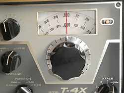 USB/LSBのモード切替は、フィルタの切り替え・・・キャリア発振は一つで、周波数読み取りもひとつのカーソルでというDRAKEのポリシーは変わりません ファイナル管は、6JB6ですし、PTO素子がトランジスタからFETに変わったくらいで、この後のT-4XB、T-4XCと大きくは変化していません 見た目にはメイン・ダイヤルが大きく変化・・・T-4XCモデル、でした(1KHz直読ダイヤルに) |