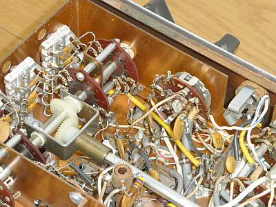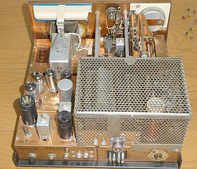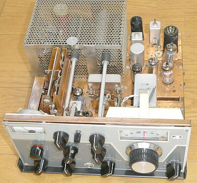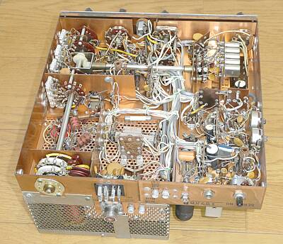 シャーシ上面をフロント側から見たもの トランシーバ(TRシリーズ)とは異なり、RF同調は、スラグチューンです TRシリーズ・トランシーバは、マチュアバンド専用で、こちらはVCによるチューンですので、ゼネカバかどうかで仕組みを切り分けているようです |