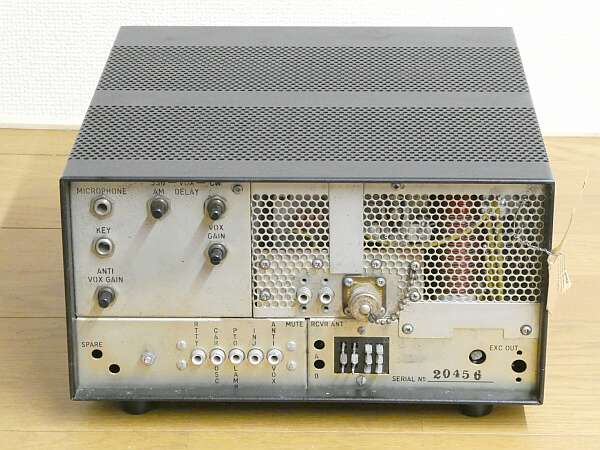 | サイズは、275W 140H 295D 重量は、約6.6Kg 電源の内臓もないせいもあって、小型軽量です 終段は、DRAKE共通の6JB6が2本 650Vをかけて、入力200W PEPを得ています AMも共通のキャリア・コントロール変調です
