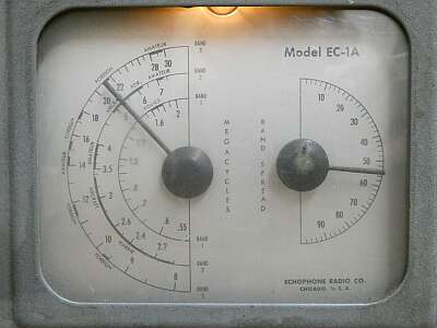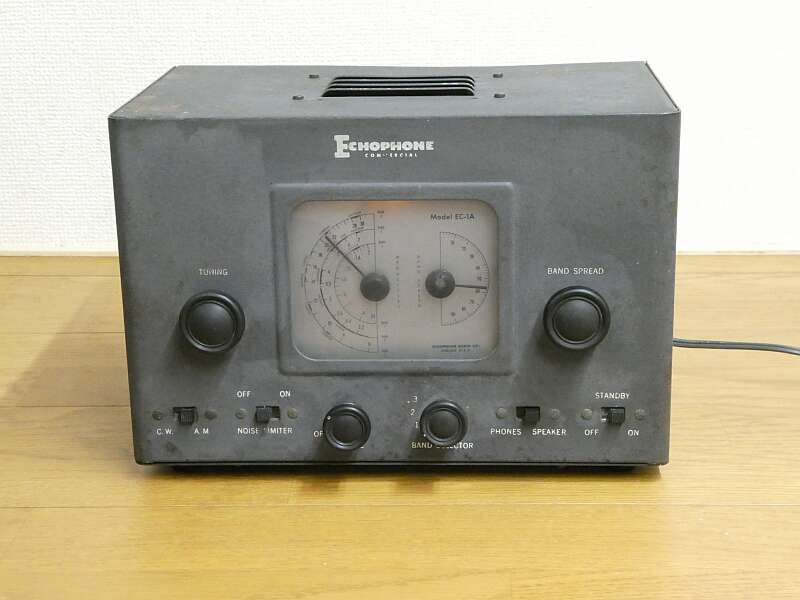 | EC-1Aは、 家庭用ラジオの標準的で平凡な、日本でいうトランスレスのシングルスーパーヘテロダイン構成になっており、 いわゆる5球スーパーにBFO発振管を追加した6球式です スピーカーも内蔵された軽量の受信機です サイズは、298W 198H 202D 重量は、約4.9Kg です BC帯から30MHzを3バンドでカバーします 1.550KHz−2MHz 2.2MHz−8MHz 3.8MHz−30MHz 発売は、ハリクラフターズ社からです