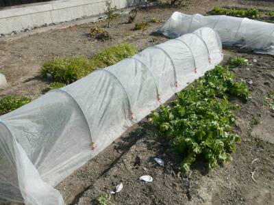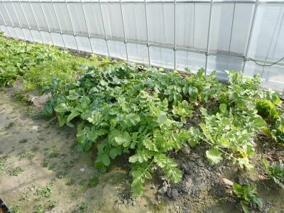 現在植わっているものはニンニク、これからの作付けを控え、土の養生中です |
