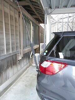 ご覧のように、事務所駐車スペースの屋根の下に収まりました(自宅のカー・ポートには当たってしまいます!)