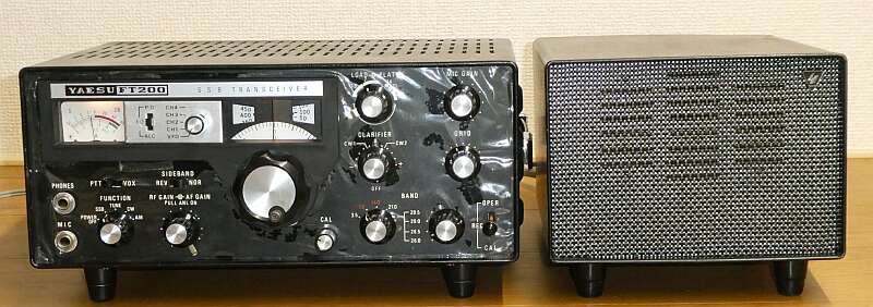 FT-200本体も、外部スピーカー出力端子が、RCAレセプタクルのものと、2Pフィーダーコンセントのものがあります |