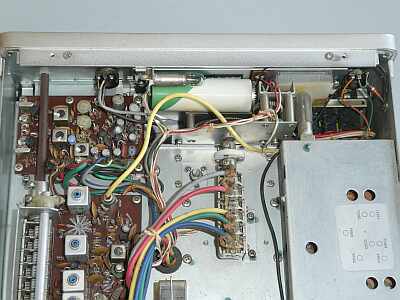 中央の出っ張りは、内臓安定化電源のパワートランジスタのコレクタをカバーするもの