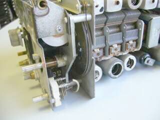長いシャフトが選局ダイヤルで、バーニア機構を使って減速してギアを経由、