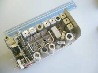 コイルパックの上に見える水晶発振子は、第一中間周波数から第二中間周波数に変換をするためのものです