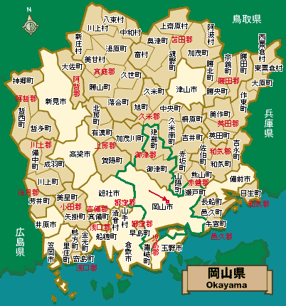平成21年現在の岡山市を「緑線」で囲ってみました