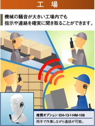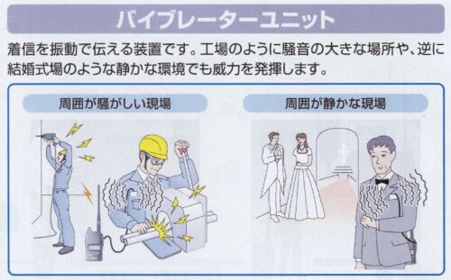 着信を振動で知らせる装置で、工場など騒音の大きなところ、逆に式場など静かな環境で、無線機の活躍シーンを増やします