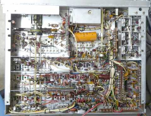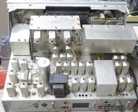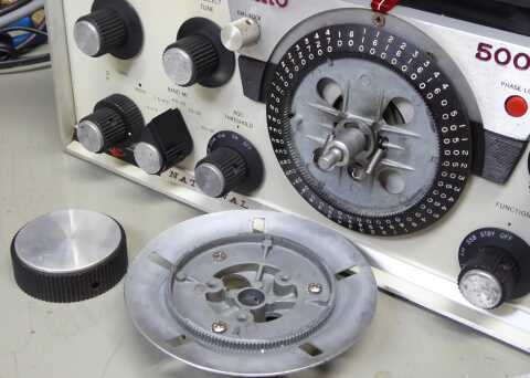 動作には関係しませんが、プリ・セレクタ周波数表示板の一部が照明ランプに焼かれて黒ずんでいます