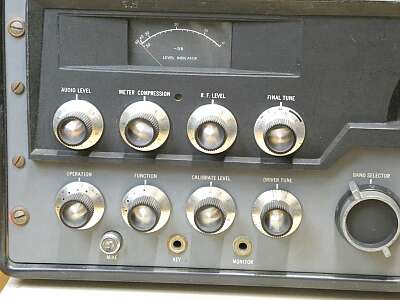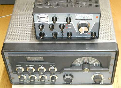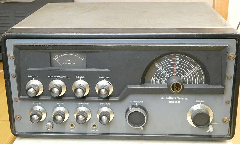 | ハリクラフターズ社 HT-32 80〜10m AM/CW/SSB アマチュアバンド専用送信機です 相方の受信機としては、SX-100やSX-101などとのセットを意識した送信機です いずれも大型で、重量級の製品です 508W 260H 432D 重量は、約40Kgあります 1957年発売の初代です SSB/CW 100W AM(DSB)17〜25Wという仕様のようです 発売当初の価格は、$675 という情報があります |