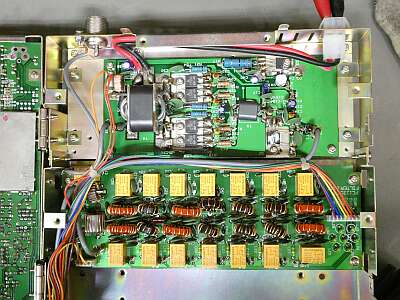 IFフィルタは、標準ではSSB用のみ AMは、このフィルタを使用せず、言わばパスです オプションで、ナローAM(6KHz巾)用と、CW(0.5KHz巾)用の用意があったようです SSB用フィルタの上にAMフィルタ 下に、CWフィルタが取り付けられるようになっています |